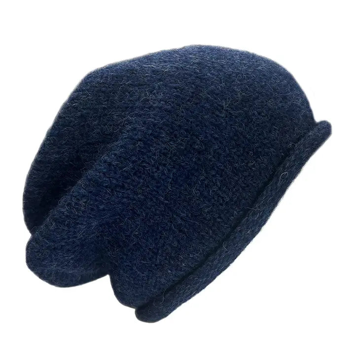 Keep warm and look cool with this perfectly slouchy beanie. Throw it on and scrunch it back for an easy every day accessory. Alpaca fiber is considered by the fashion industry to be one the greenest, most natural and softest fibers in the world. It is prized for its unique silky and luxurious feel and has a lesser tendency to pilling. This classic beanie is made on a hand knitting machine by a weaving collective in Peru.