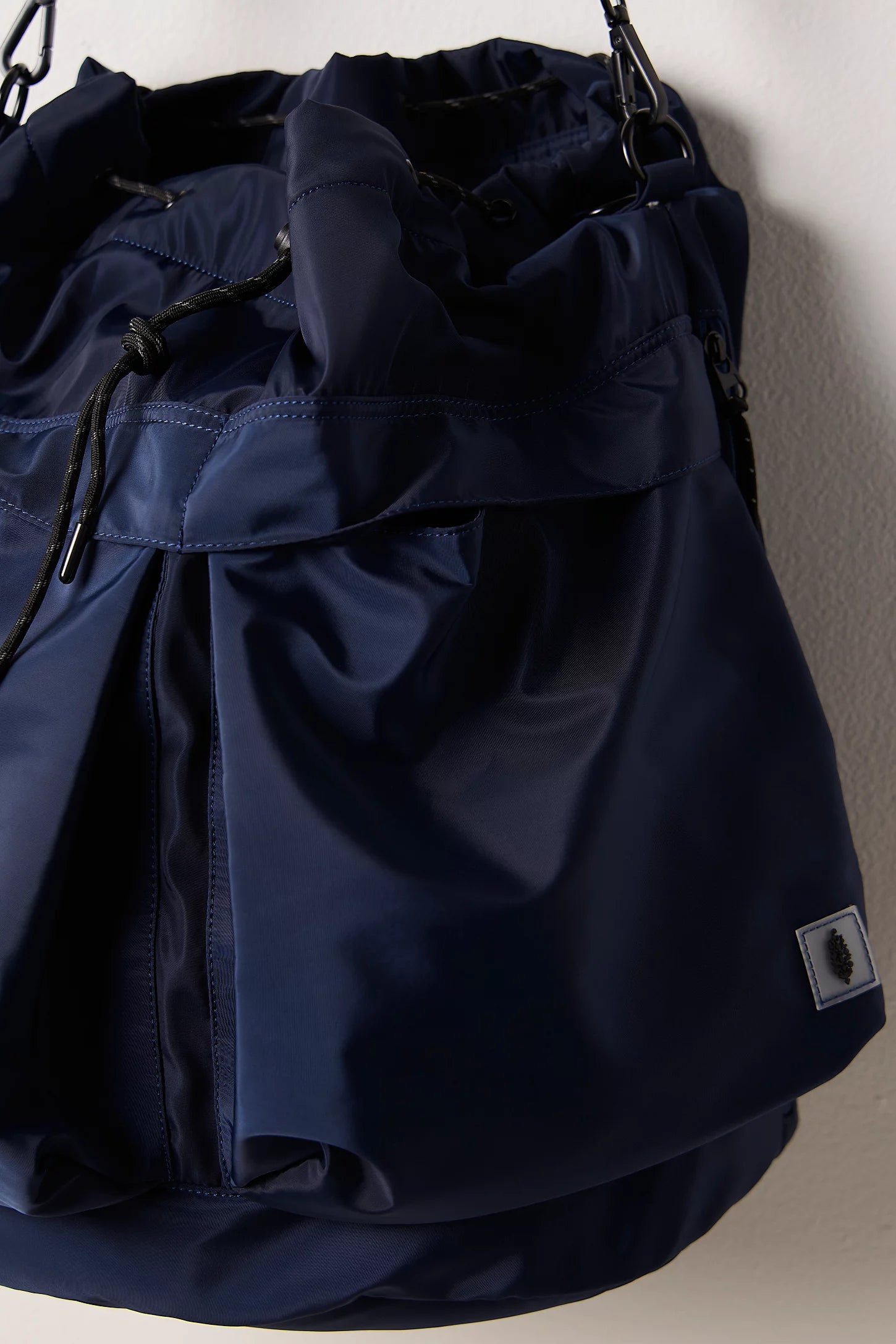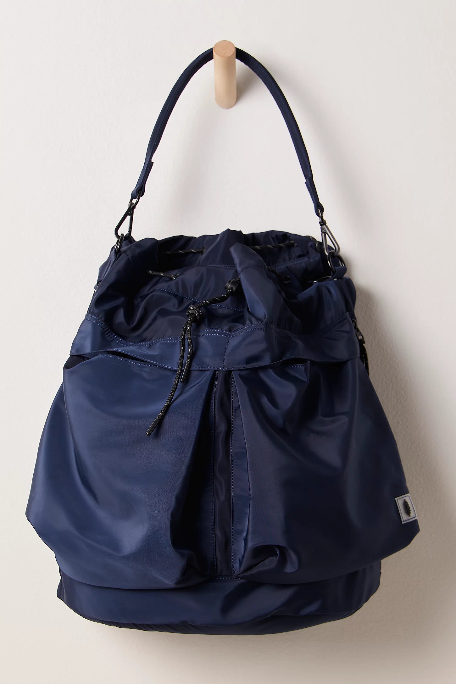 The true definition of an effortless essential, this super sporty bag is featured in an oversized, bucket-inspired style and super sporty, poly fabrication with exaggerated pockets and bungee-inspired zip detailing for a true utility-inspired touch.