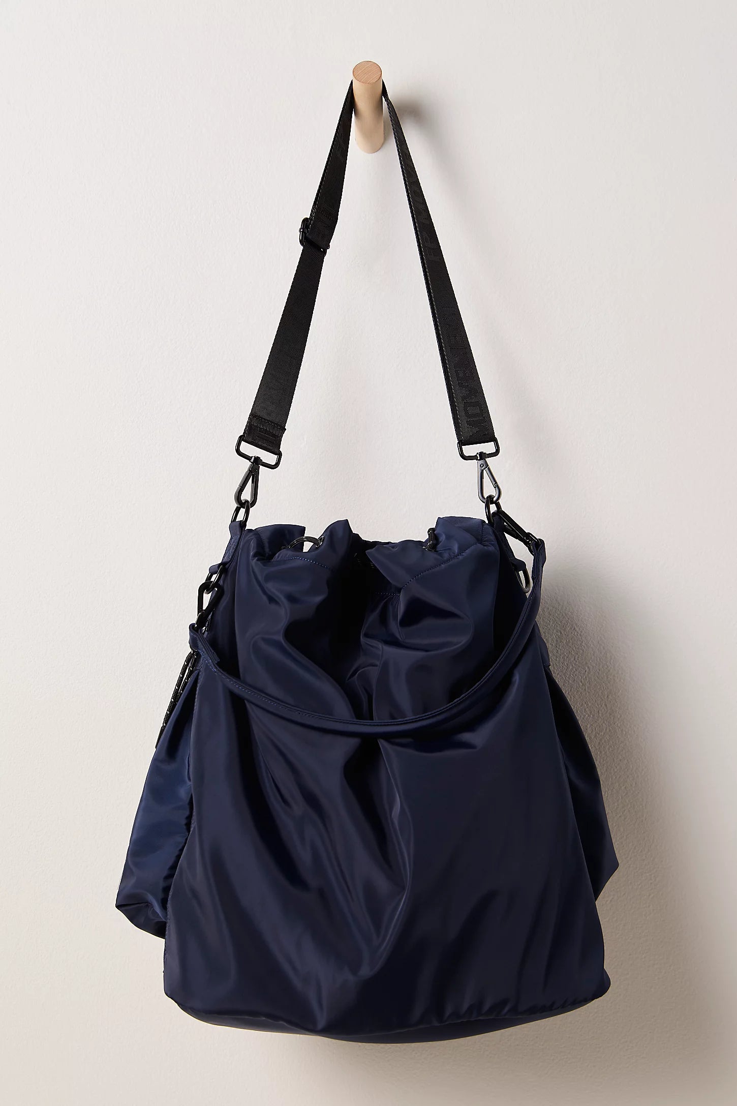 Relaxed bucket shape, fixed-length shoulder strap, two exaggerated front pockets, bungee-inspired drawstring top closure, fully-lined interior, interior zip pocket. The ideal piece to take you from the trail to the track to the training room, this super sporty bucket bag is sure to be your top pick to tote all your fitness-focused belongings no matter the activity.