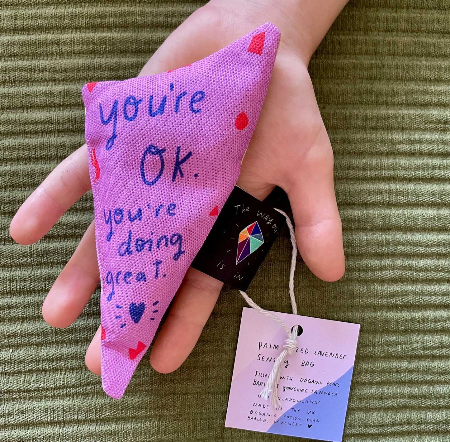 Something to focus on in a pretty crazy time. Palm sized bag hand sewn in Manchester UK. Made with organic cotton, filled with organic pearl barley and Yorkshire grown organic lavender. Use it to soothe your senses, slow your breathing and focus on something tangible.
