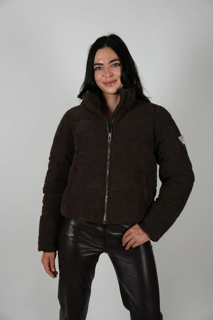 Winter warmth meets timeless edge. The Sundeck Cord Puffer in rich chocolate is your ultimate cold-weather companion—crafted in ultra-soft corduroy with a quilted finish for that elevated, structured puff. Designed with a high stand collar, front zip closure, and the signature triangle patch on the sleeve, it’s as chic on the slopes as it is in the streets.
