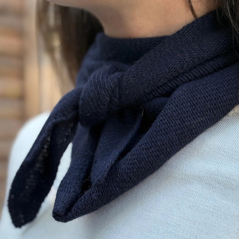 Add a touch of warmth and elegance to your outfits with this fine-knit triangle scarf. Comfortable and soft, it stands out with its practical design that ties delicately at the front, offering both support and style. A versatile accessory, easy to match with your favorite coats and sweaters. Ideal for facing cool days with elegance.
