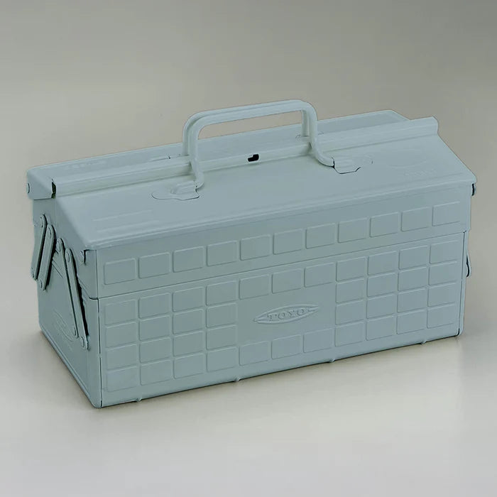 Steel toolbox with cantilever lid, one upper storage tray with adjustable and removable dividers and hole for a padlock. Use for art supples, make-up, medical supplies, snacks or tea - the possibilities are endless!