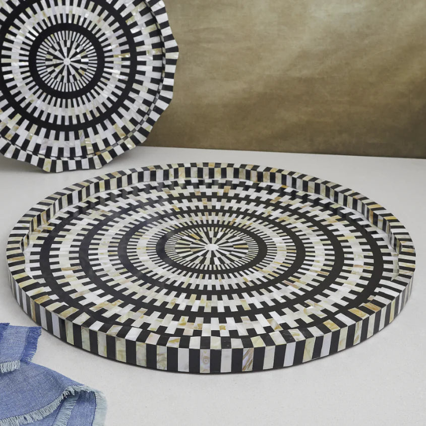 Enhance your dining ambiance with the exquisite Finlay Inlay Tray from the prestigious Finlay & Lyra collection. This remarkable tray features meticulous craftsmanship and intricate detailing, blending high-contrast materials and striking geometric patterns for a modern take on traditional inlay.
