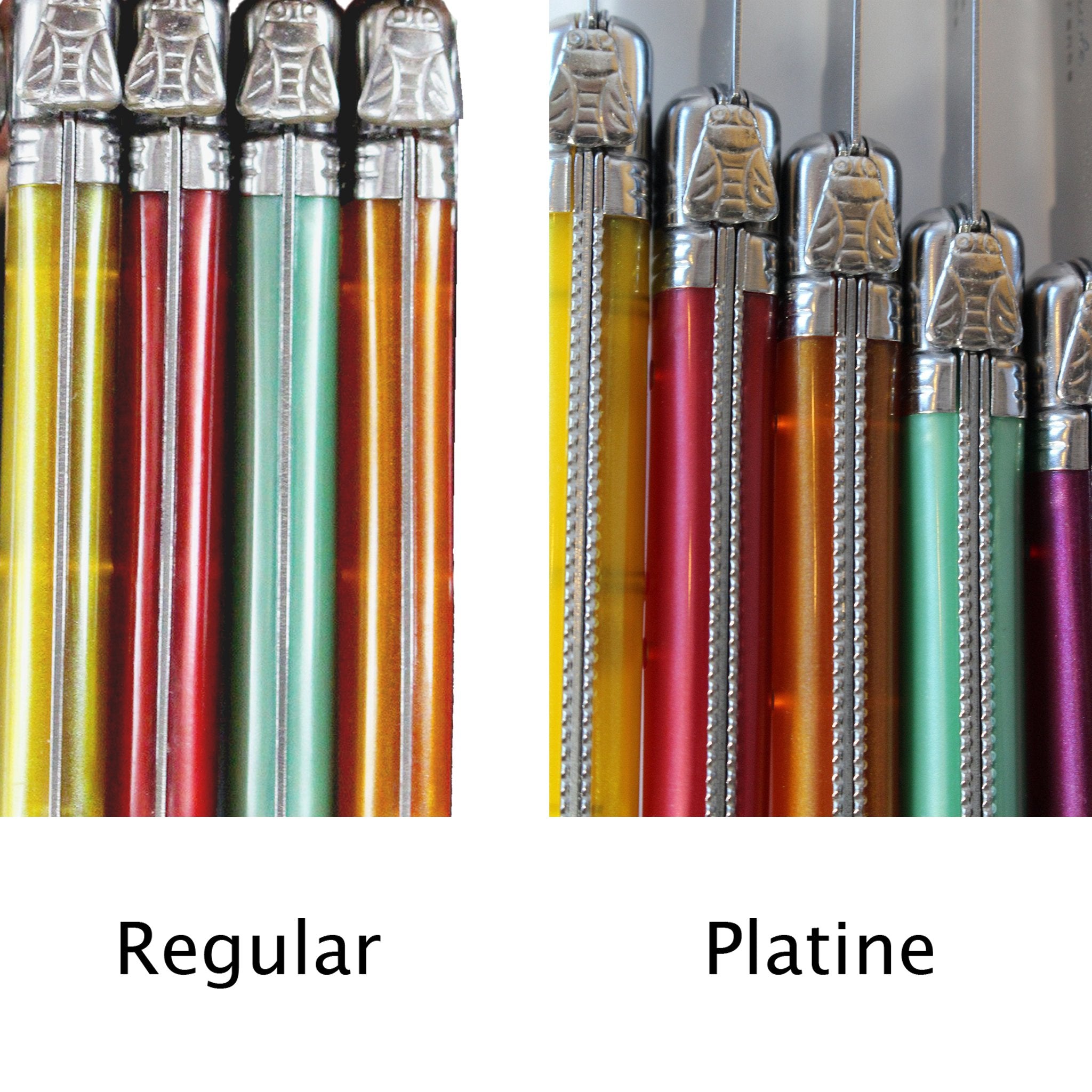 The Laguiole style is world renowned for tradition and quality and originates from the Midi-Pyrenees region of France. This set comes from Jean Neron, a third generation family run company specializing in Laguiole style coutellerie or cutlery. Crafted from high quality stainless steel, these knives make a lively addition to any dining experience.