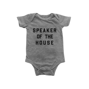 The original "Speaker of the House" design is here to say something! Your baby will command attention in this short sleeve baby bodysuit. Show everyone what a leader your little one is when you choose our “Speaker of the House” short sleeve one piece.
